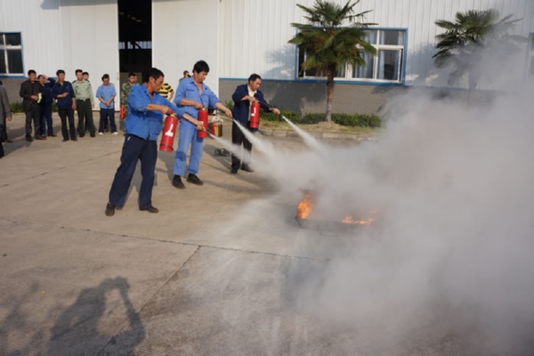 逃身演練完成后,所有人員到公司院內(nèi)空地,在事先預(yù)備“火災(zāi)”現(xiàn)場(chǎng),首先由消防中隊(duì)教官,具體講解了滅火器的使用方法、滅火的注意事項(xiàng)和撲火的操作步驟,然后由消防戰(zhàn)士作操作示范,最后開始實(shí)戰(zhàn)演練,點(diǎn)燃事先準(zhǔn)備好的油棉紗,現(xiàn)場(chǎng)燃起大火及濃煙,由本次演練總指揮(公司副總經(jīng)理、安委會(huì)副主任)隨即啟動(dòng)消防滅火救援預(yù)案,按照預(yù)案要求進(jìn)入實(shí)戰(zhàn)狀態(tài),指揮參加演練的義務(wù)消防隊(duì)員,拿起滅火器具,遵照操作要領(lǐng)和步驟,火勢(shì)很快被壓住并撲滅,隨后仔細(xì)進(jìn)行全方位檢查,撲滅暗火、余火。除消防安全知識(shí)培訓(xùn)時(shí)間外,整個(gè)演習(xí)時(shí)間約65分鐘左右。