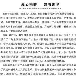 湖北高中壓閥門有限責(zé)任公司董事長(zhǎng)陶宏國(guó)助學(xué)紀(jì)實(shí)